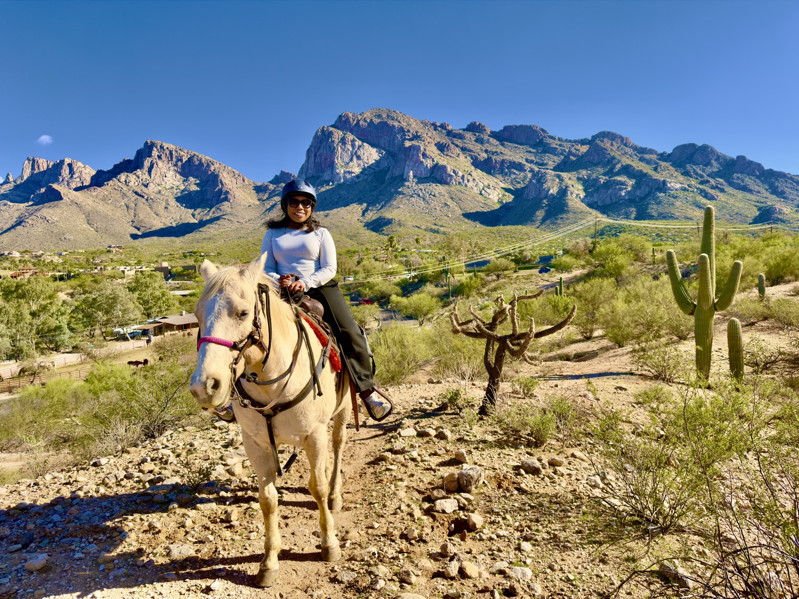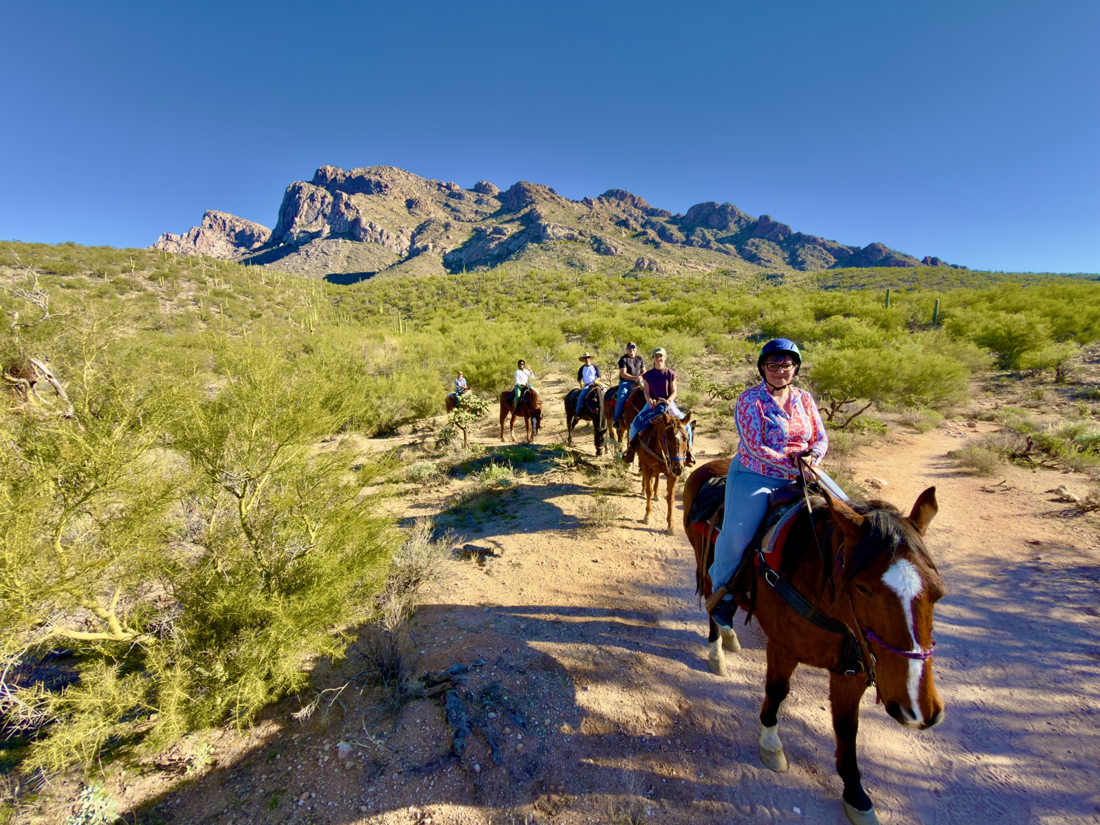 We have two locations in Arizona. Our Tucson location, The Corral at El Conquistador, and an Oro Valley location, The Stables at Westward Look. The Corral at El Conquistador offers a technical Advanced Mountain Ride, where experienced riders can challenge themselves with a steep and rewarding climb in the Pusch Ridge Wilderness. Our Oro Valley location offers a peaceful 90-minute horseback ride through the trees and cactus of the Sonoran Desert.